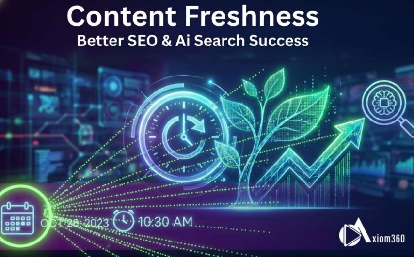 At Axiom360, we specialise in using AI-powered SEO strategies that ensure your content stays fresh, relevant, and primed for success. In this blog post, we will explore the role of content freshness in SEO and how publishing updated content with the right timing can boost your rankings and visibility across search engines and AI-powered tools.